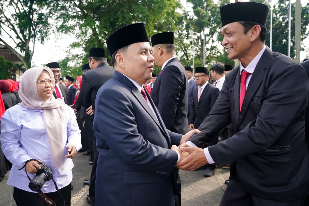 BOGOR (BJN) - Ketua DPRD Kota Bogor, Dr. Adityawarman Adil, menghadiri upacara pelantikan dan pengambilan sumpah jabatan sejumlah pejabat di lingkungan Pemerintah Kota (Pemkot) Bogor. Acara berlangsung digelar di Plaza Balaikota Bogor pada Rabu, 11/2/2026.