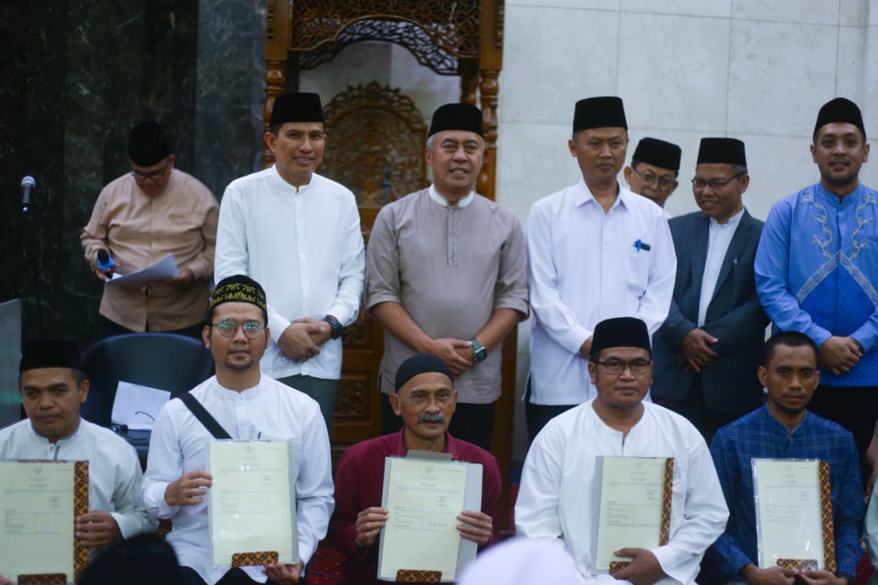 Sementara itu, penyerahan sertifikat tanah wakaf merupakan upaya memberikan kepastian hukum atas aset wakaf agar dapat dimanfaatkan secara optimal untuk kepentingan umat, baik sebagai sarana ibadah, pendidikan, maupun kegiatan sosial keagamaan lainnya.