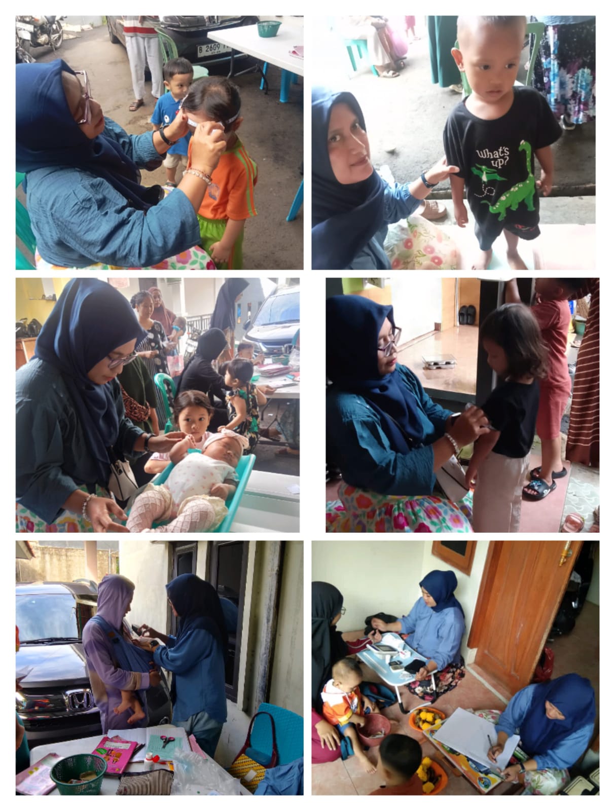 Dalam kegiatan tersebut, Bidan, Nakes, para Kader Posyandu Anggur A, melakukan pemeriksaan kesehatan, termasuk pengukuran tinggi badan, berat badan, serta pemberian vitamin dan imunisasi dasar bagi bayi dan balita.